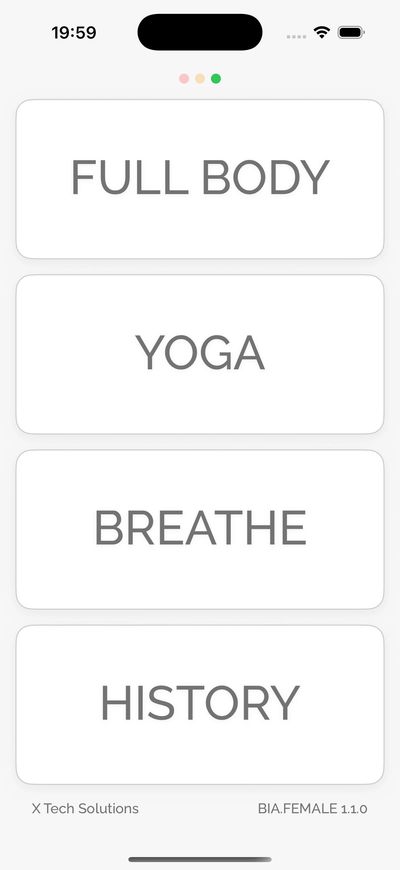 Bia.Female is a focused training companion for iPhone and Apple Watch. Build workouts by tapping a live muscle map, send sets straight to your wrist, and finish strong with guided breathing rounds. Clean design, fast flow, zero fuss.